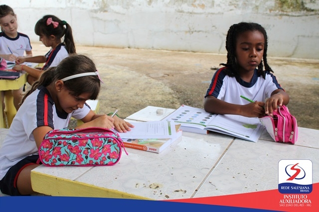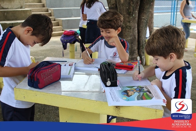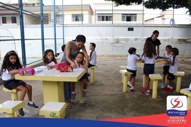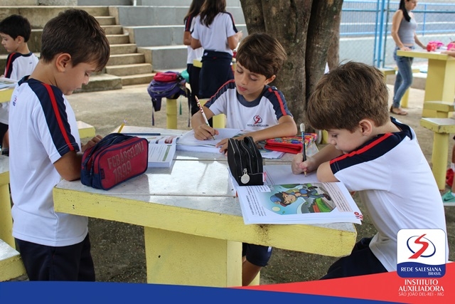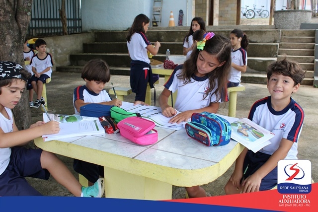 No dia 02 de março, sexta-feira, os alunos dos 2ºs anos das professoras Kelly e Laís exploraram os ambientes da escola. Os estudantes reconheceram os elementos presentes no espaço físico, aproveitando o "anfiteatro harmonia" para registrar a experiência.